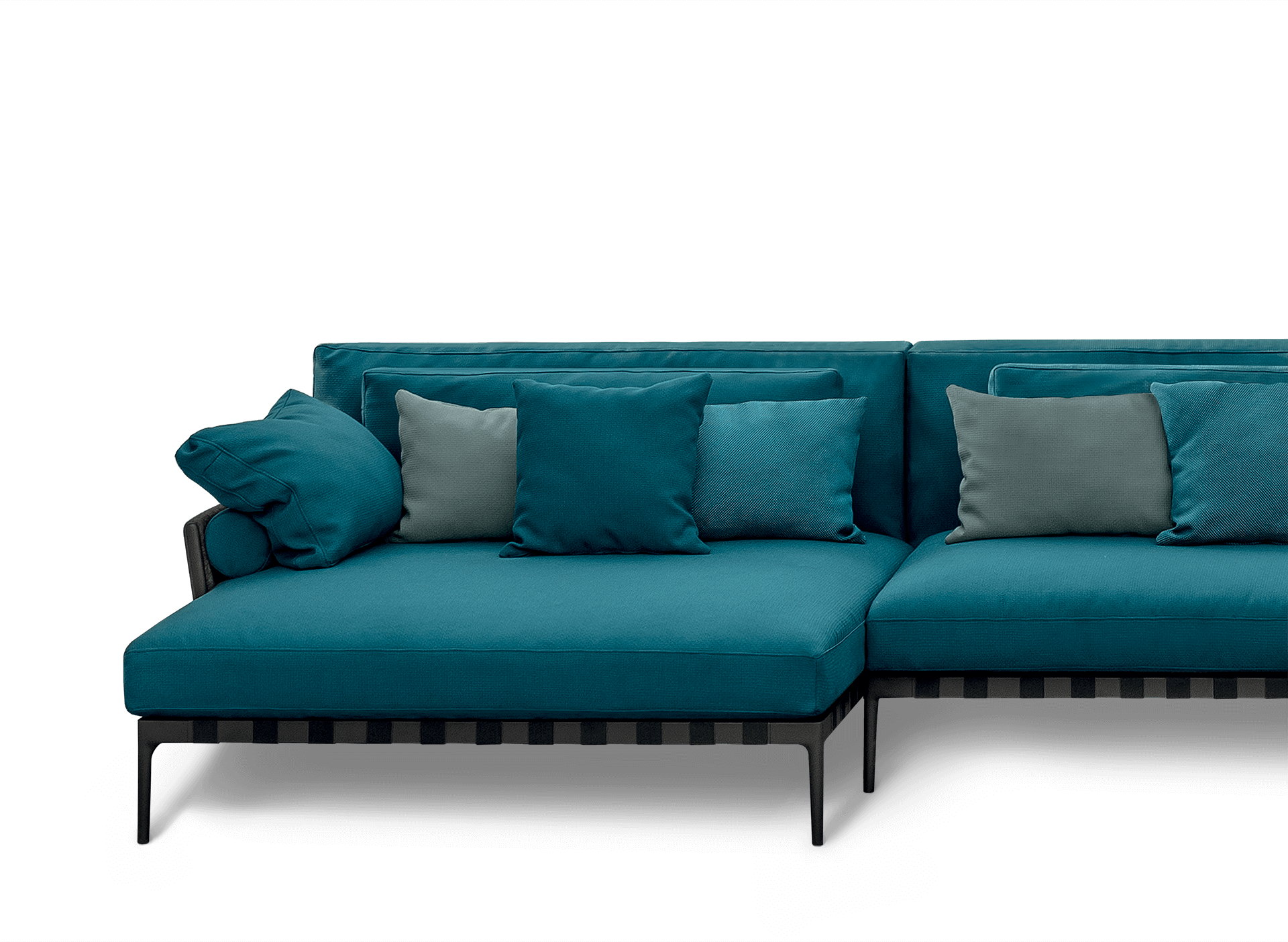 The modular sofa Salinas has a predominant textile component that brings the typical refinement of the indoor world into the outdoors, increasingly shortening the distance between the two environments and creating continuity. The natural colors of each element make up a color range inspired by the exotic landscapes of the enchanting region of Salinas, Ibiza.